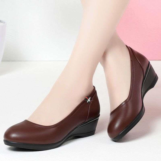 2025 Zapatos de piel con cuña y cremallera
