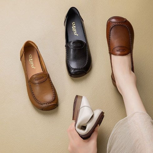 Zapatos planos de piel cómodos para personas de mediana edad y mayores.