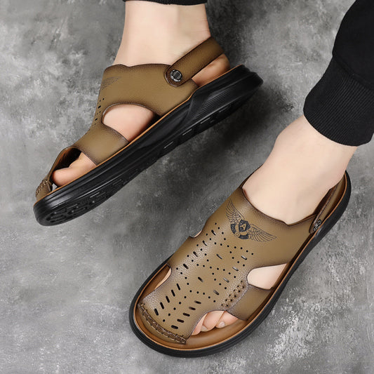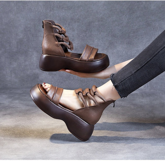 Sandalias de suela gruesa con forma de boca de pez (material de piel de vaca)