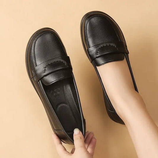 2025 nuevos zapatos de cuero con tacón de cuña estilo británico